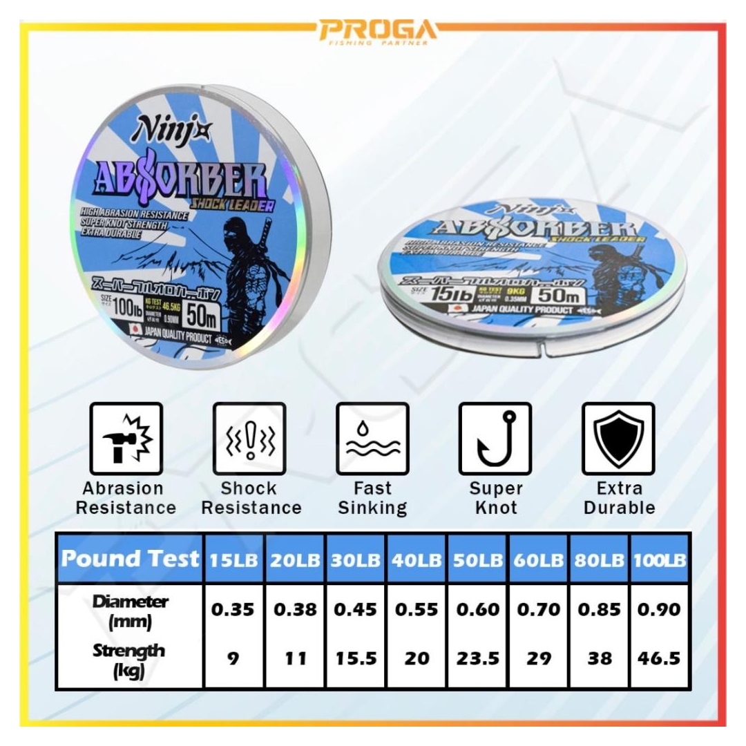 NINJA ABSORBER SHOCK LEADER 50M #15LB-100LB
