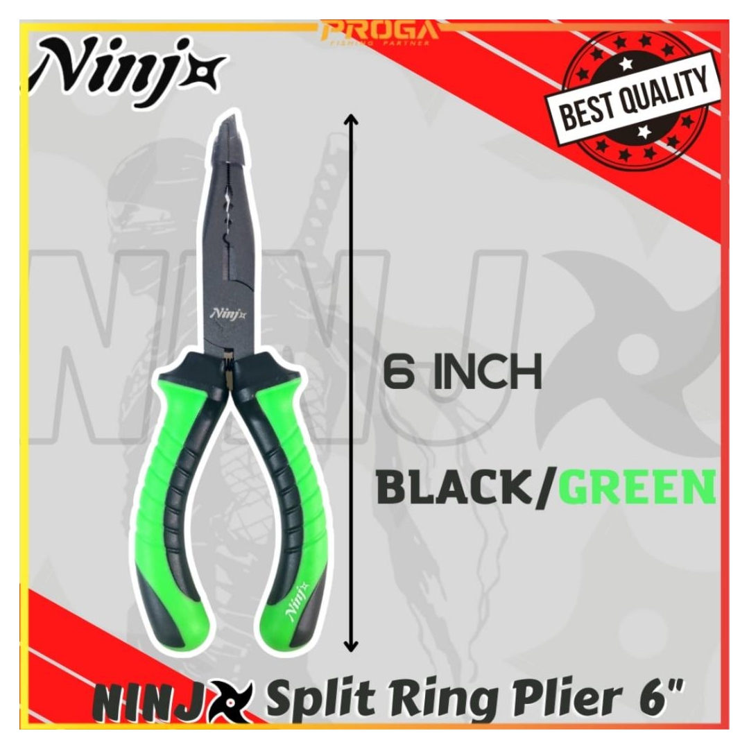 NINJ NJ8005 Split Ring Fishing Plier 6″ The best quality high grade fishing tools Carbon Steel ptfe Coating Size: 6″ Colour: #Black/Red #Black/Green