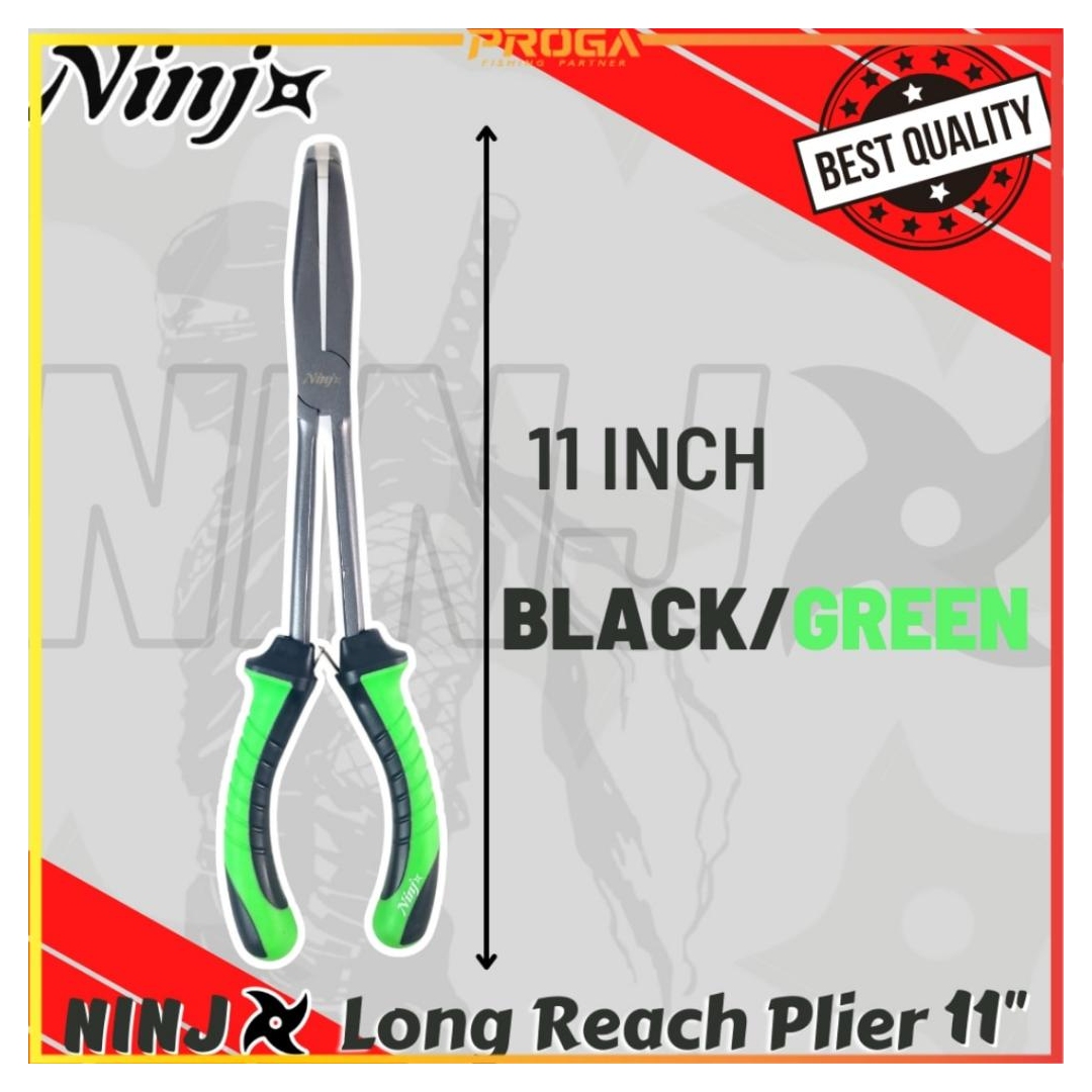 NINJ NJ8006 Long Reach Fishing Plier 11″ The best quality high grade fishing tools Carbon Steel ptfe Coating Size: 11″ Colour: #Black/Red #Black/Green