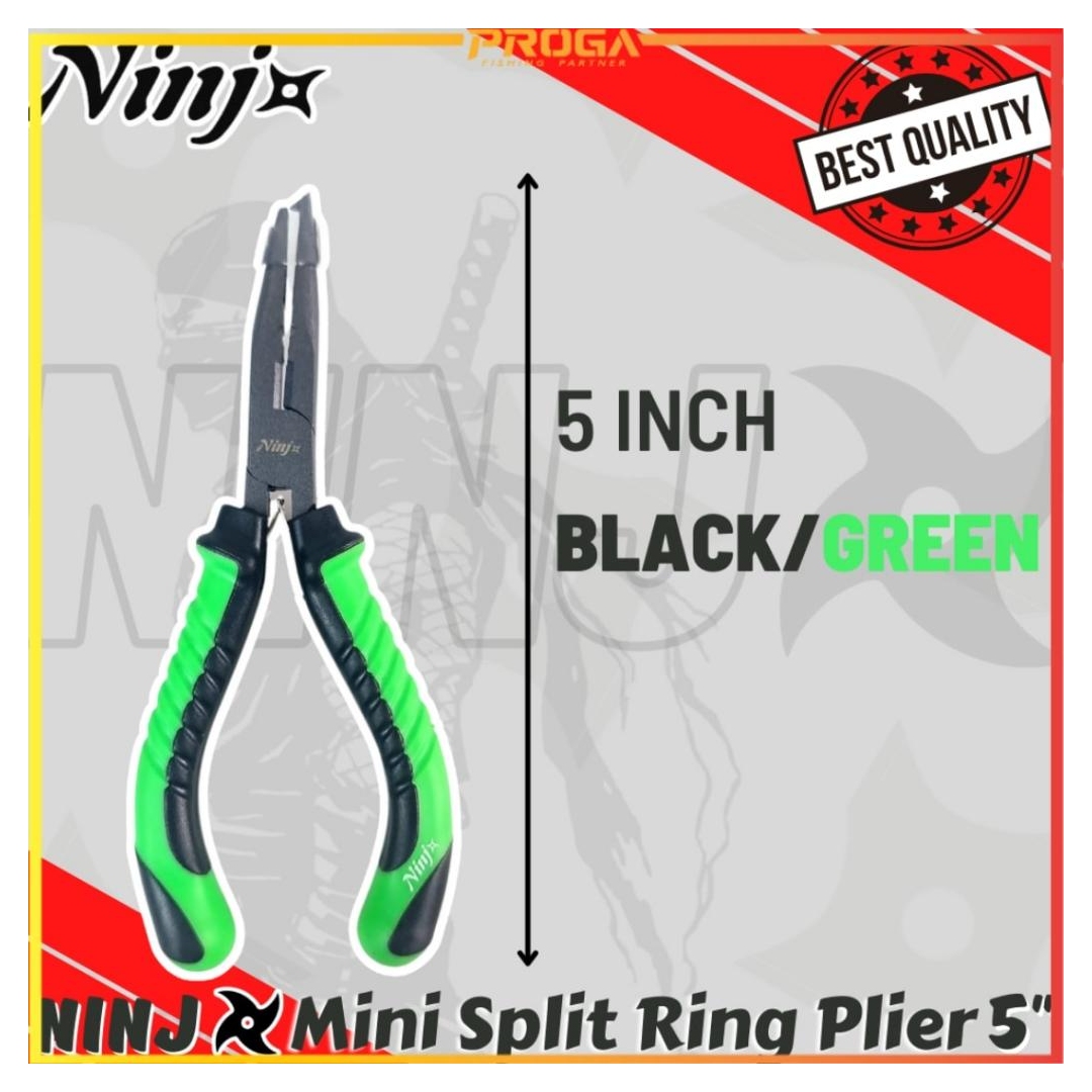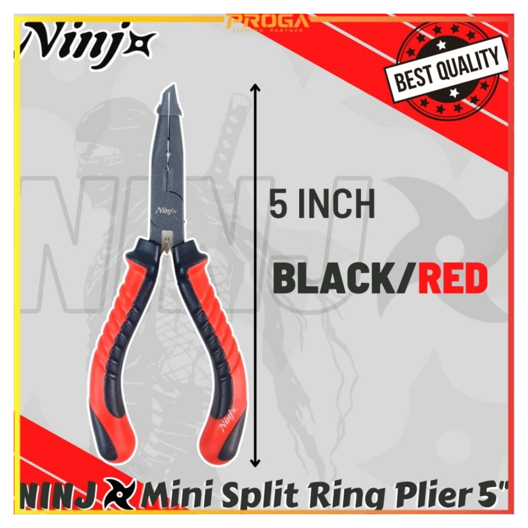 NINJ NJ8007 Mini Split Ring Fishing Plier 5″ The best quality high grade fishing tools Carbon Steel ptfe Coating Size: 5″ Colour: #Black/Red #Black/Green