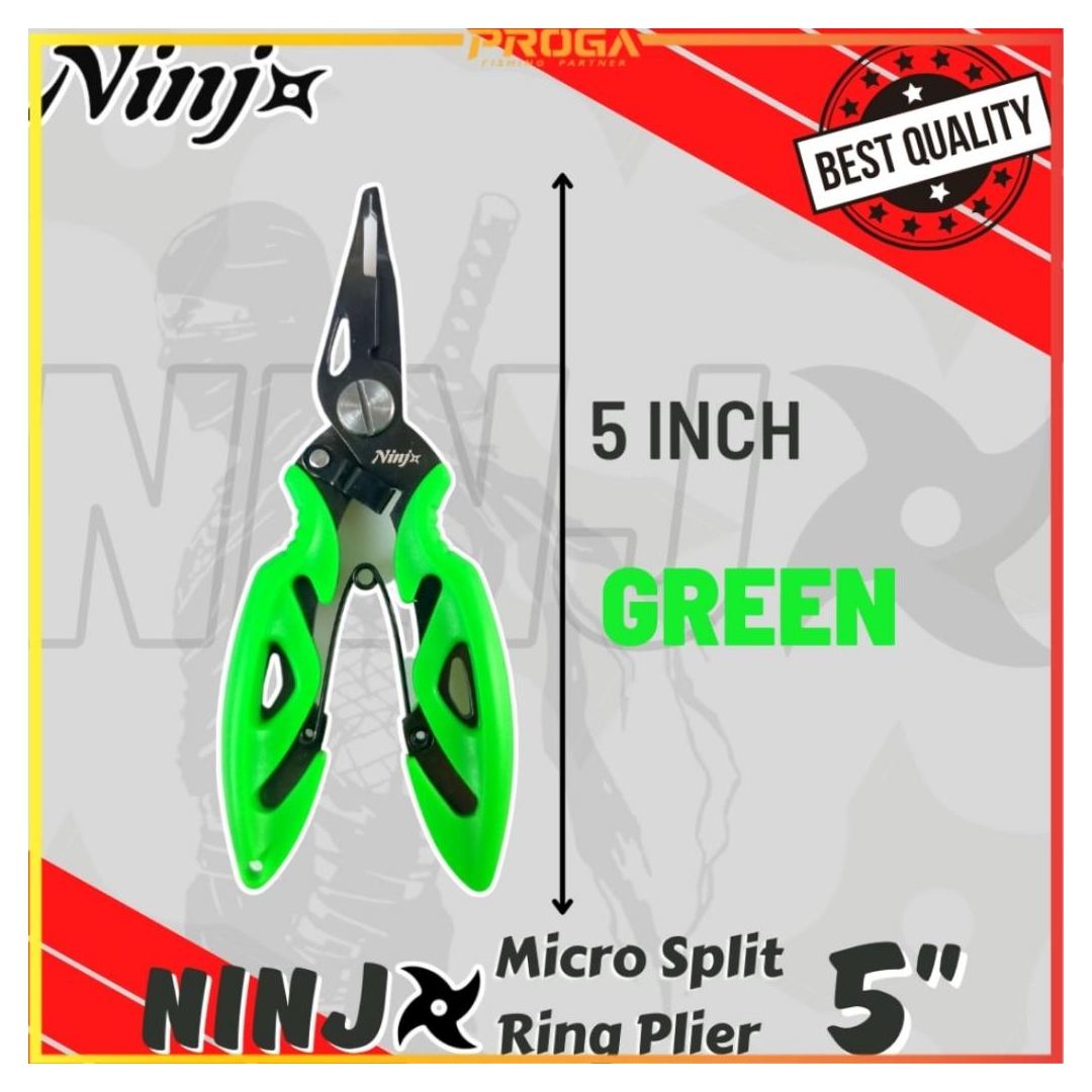 NINJ NJ8011 Micro Split Ring Fishing Plier 5″ The best quality high grade fishing tools Titanium Coating ABS Handle Size: 5″ Colour: Black Green