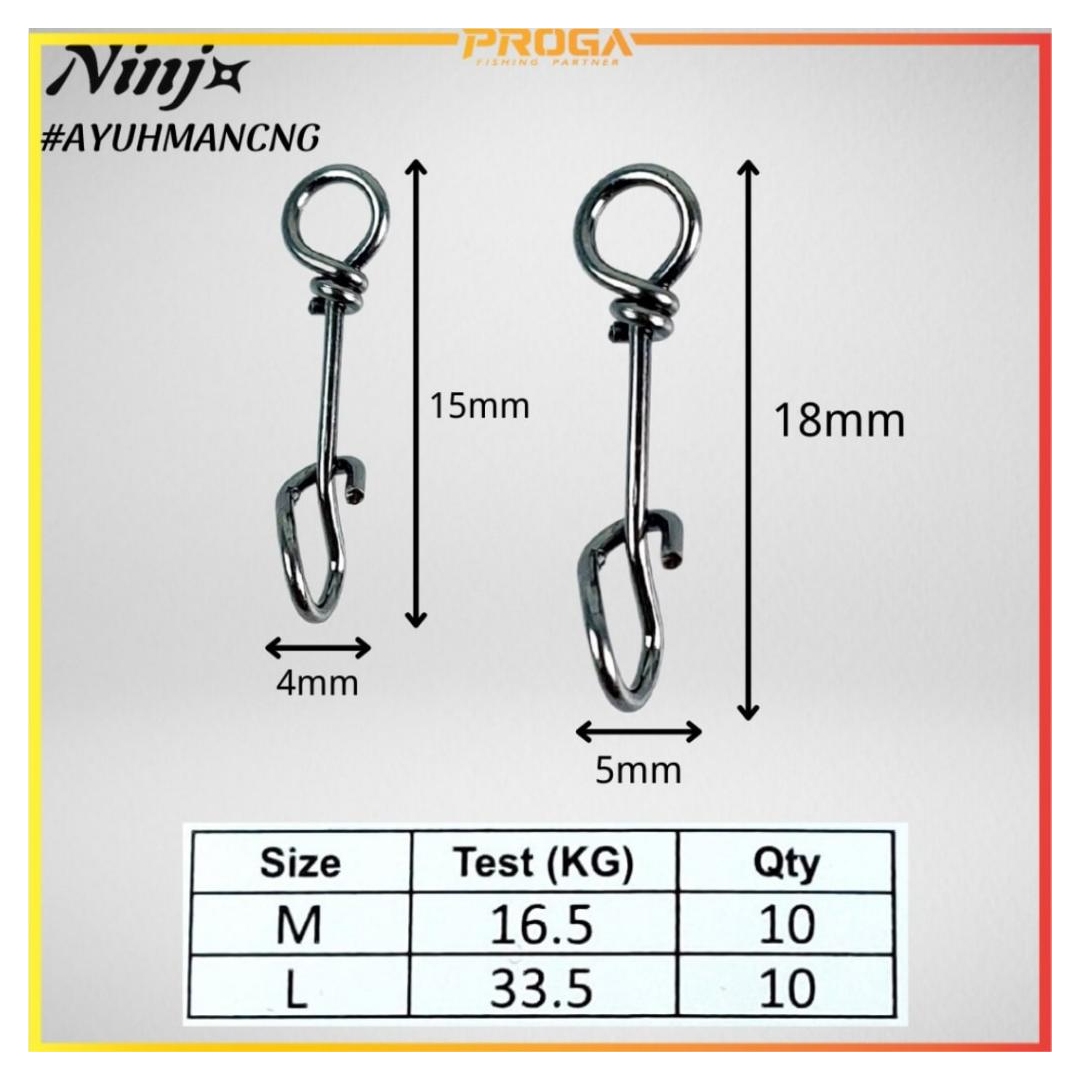 NINJ Fastach Clip Japan Made High-Quality Fishing Product Size:M Test 16.5KG 10pcs per 1pack Size:L Test 33.5KG 10pcs per 1pack