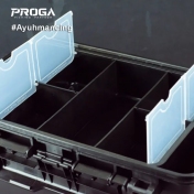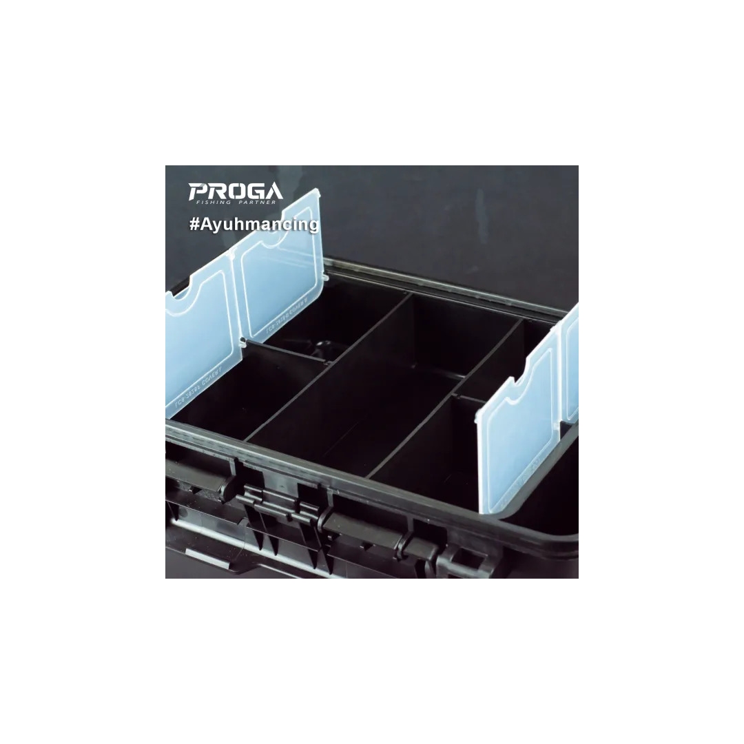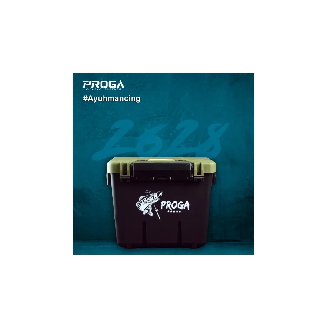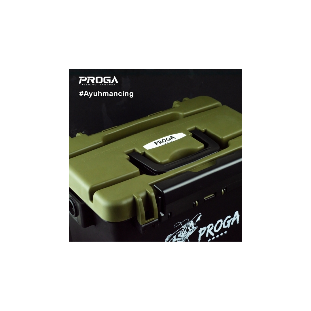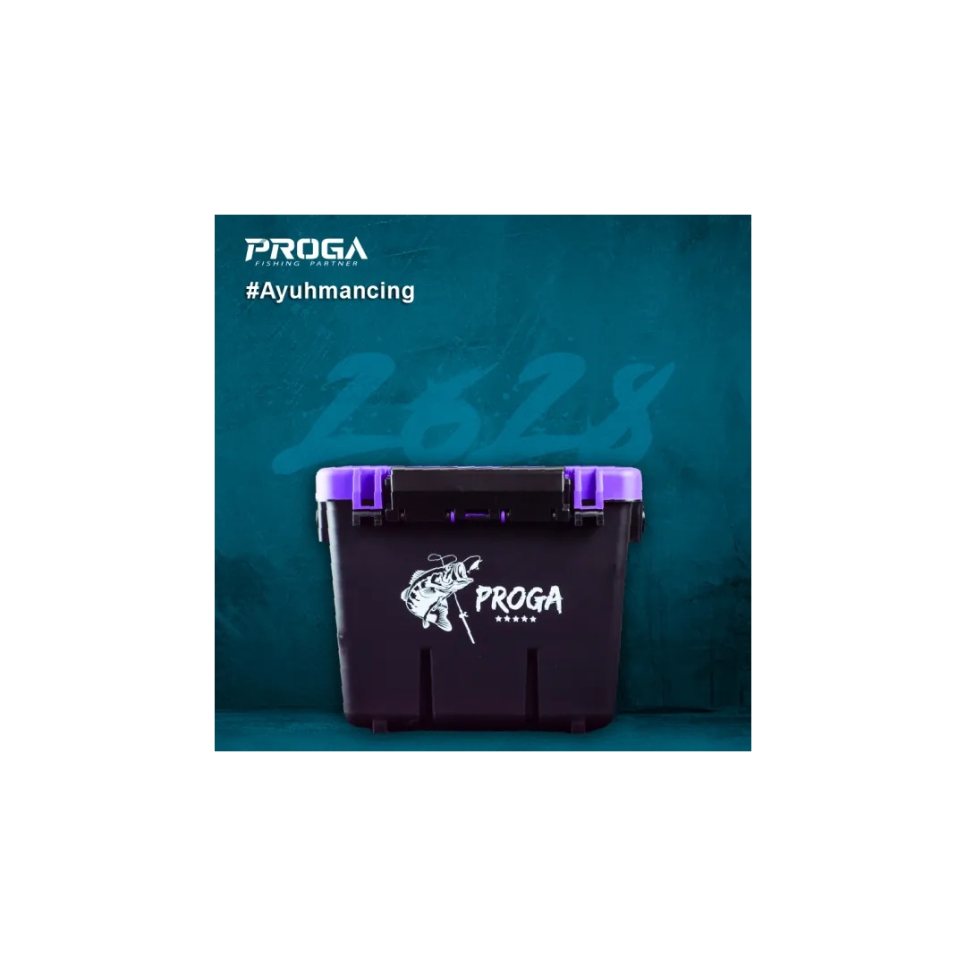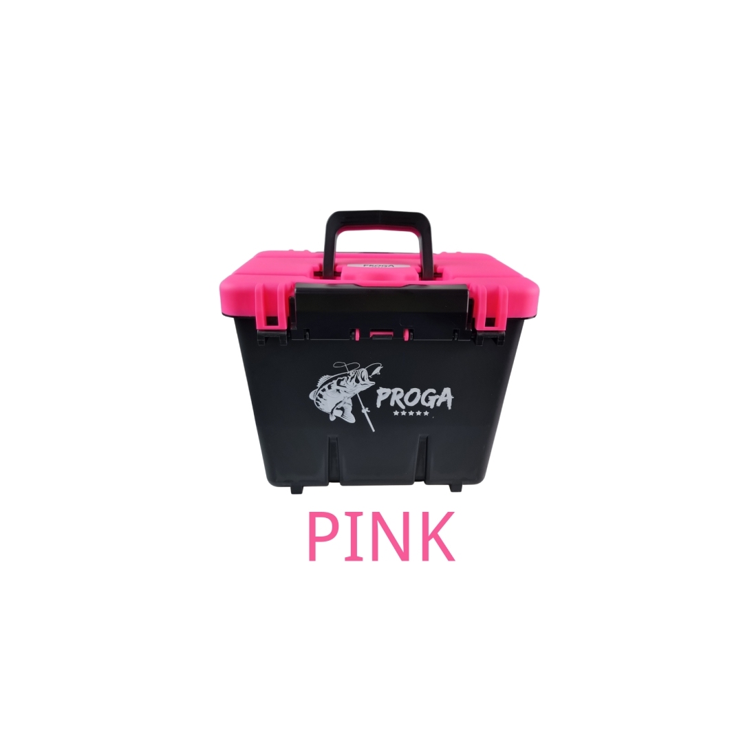 2628 PROGA TACKLE BOX DIMENSION(CM) LENGTH:24 WIDTH:36 HEIGHT:29 WEIGHT: 1.55KG BRAND: PROGA COLOUR #BLACK/BLACK #GREEN BROWN/BLACK #PURPLE/BLACK #RED/BLACK #BLUE/BLACK #LEMON/BLACK #PINK/BLACK