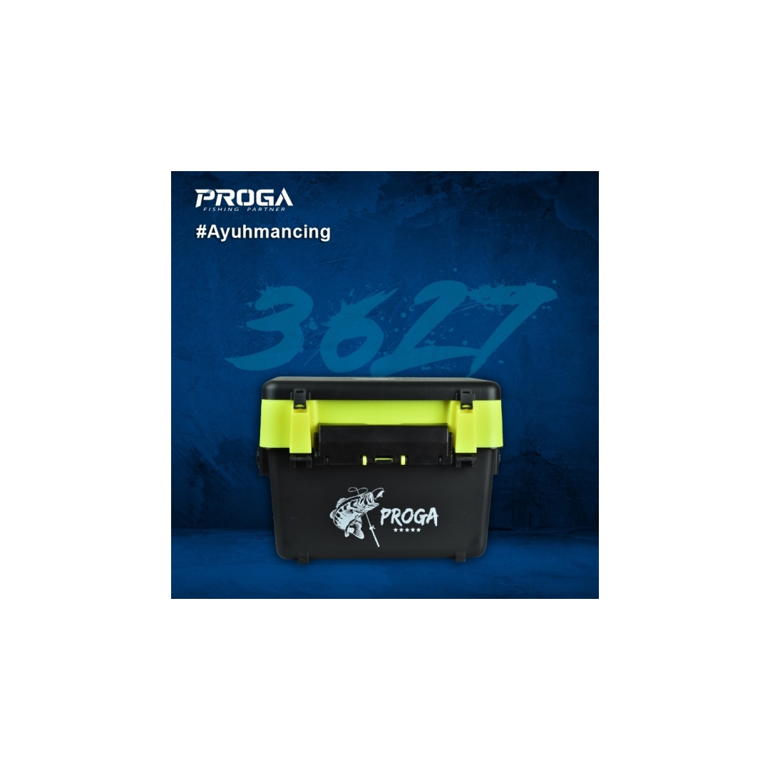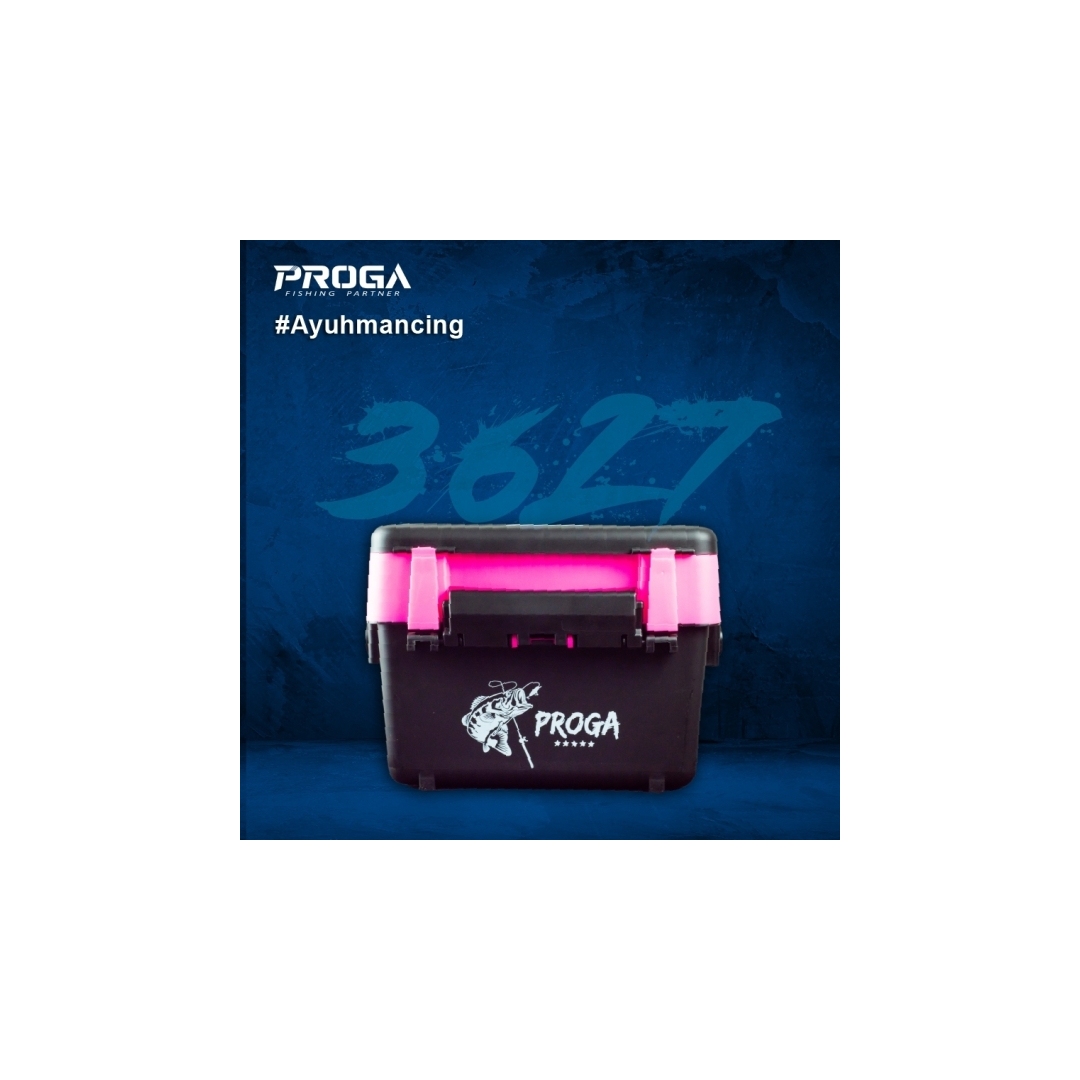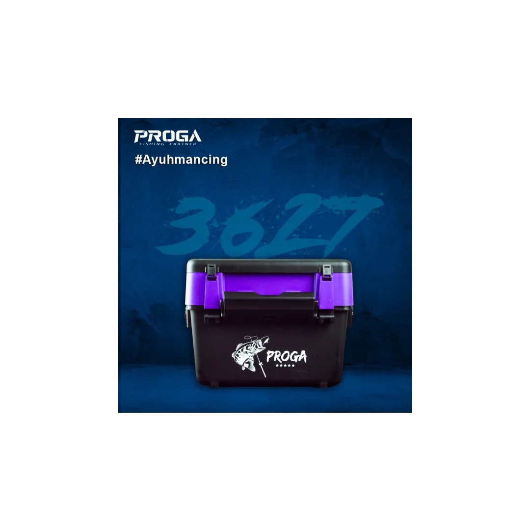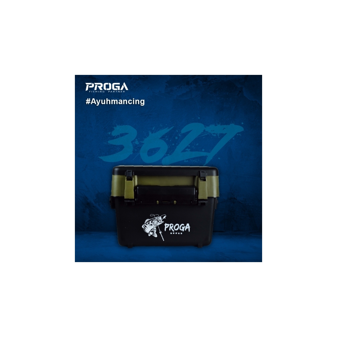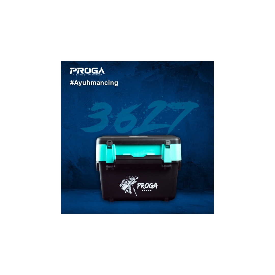 3627 PROGA TACKLE BOX DIMENSION(CM) LENGTH:21 WIDTH:35 HEIGHT:26 WEIGHT:1.68KG BRAND : PROGA COLOUR #BLACK #GREEN BROWN #PURPLE #RED #SKY BLUE #ARMY GREEN #GREY #PINK #LEMON YELLOW #BLUE