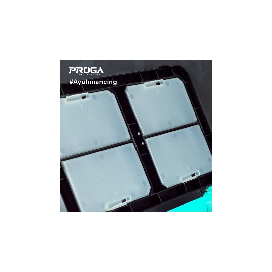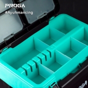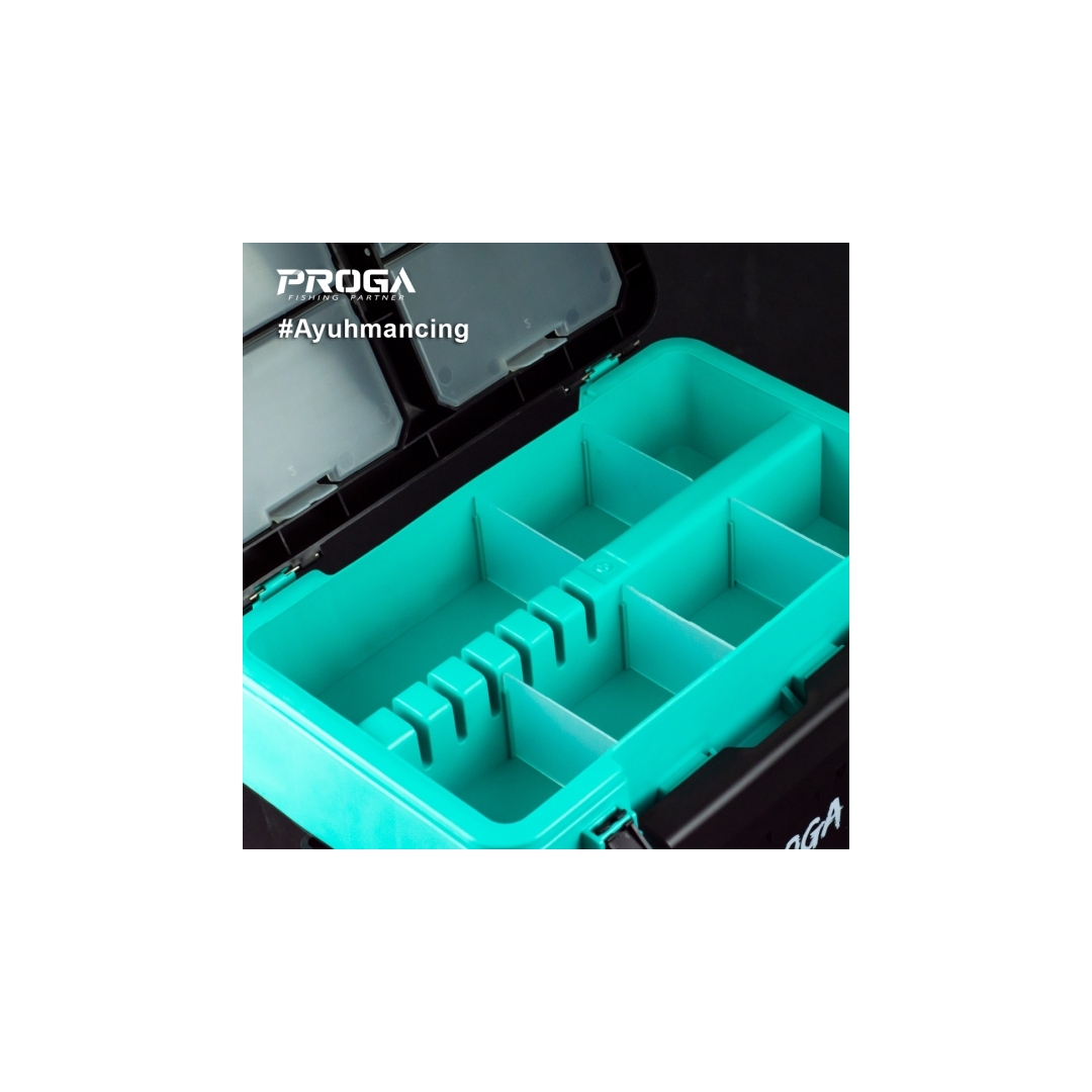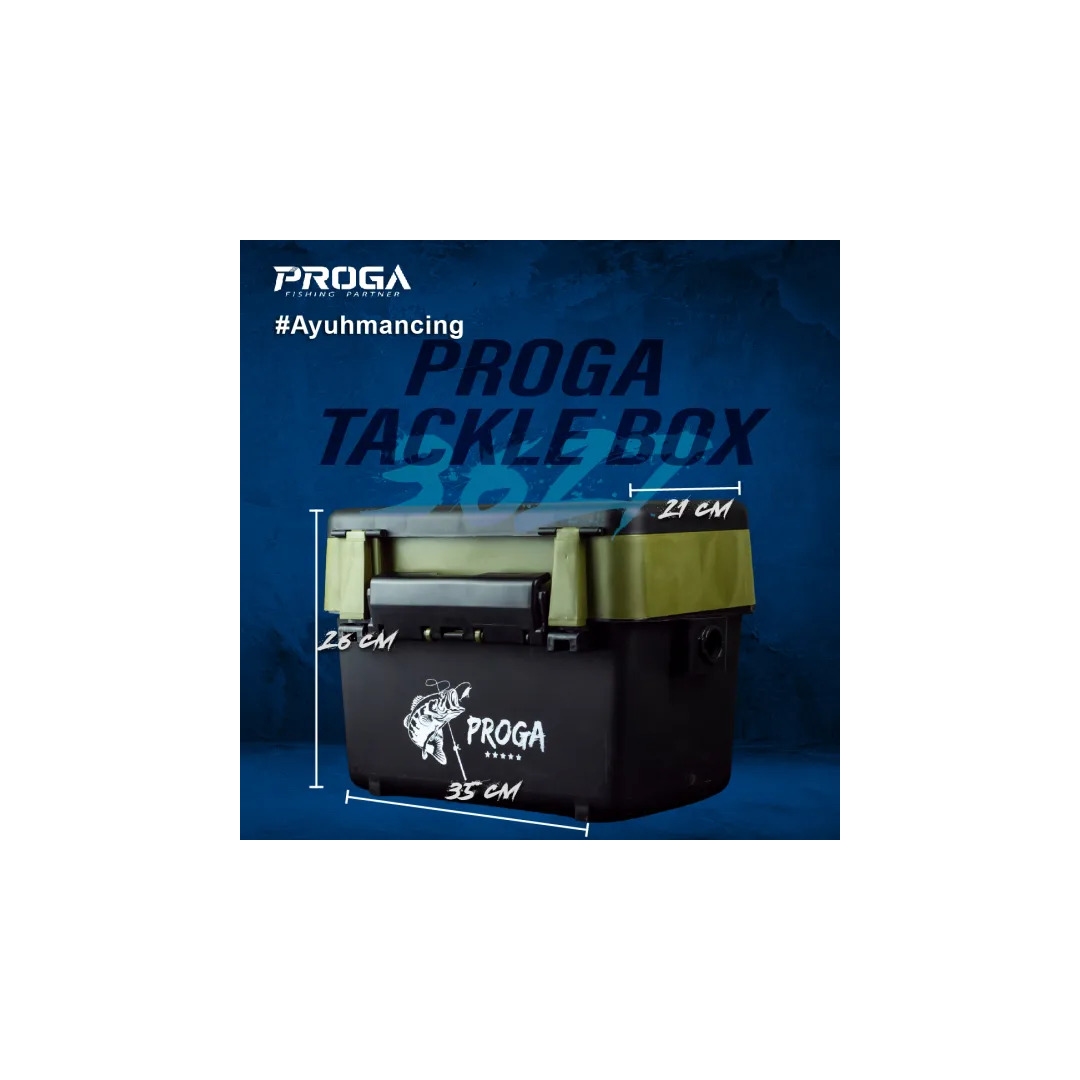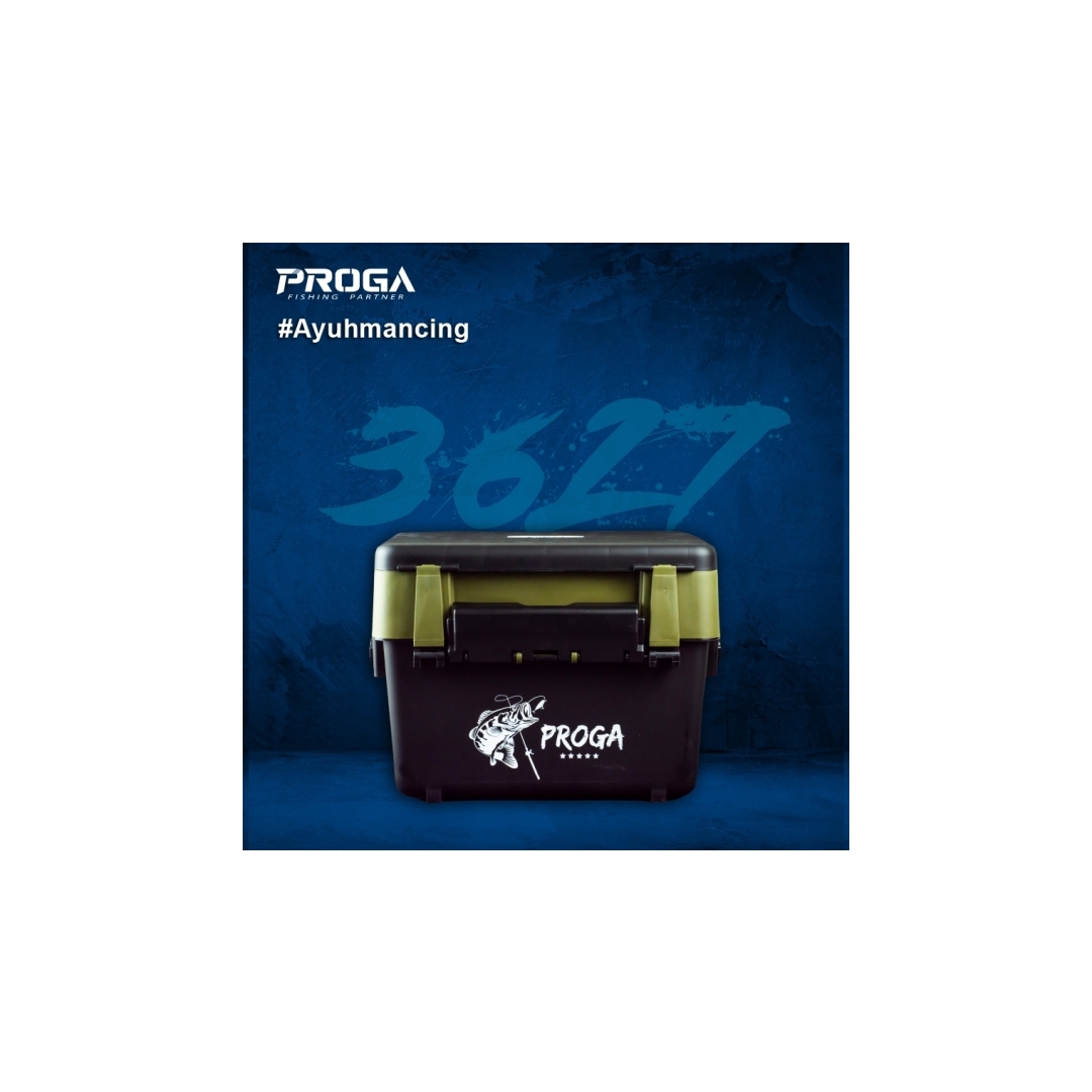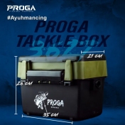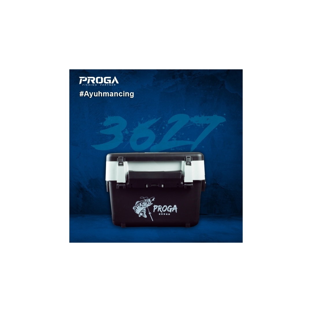 3627 PROGA TACKLE BOX DIMENSION(CM) LENGTH:21 WIDTH:35 HEIGHT:26 WEIGHT:1.68KG BRAND : PROGA COLOUR #BLACK #GREEN BROWN #PURPLE #RED #SKY BLUE #ARMY GREEN #GREY #PINK #LEMON YELLOW #BLUE