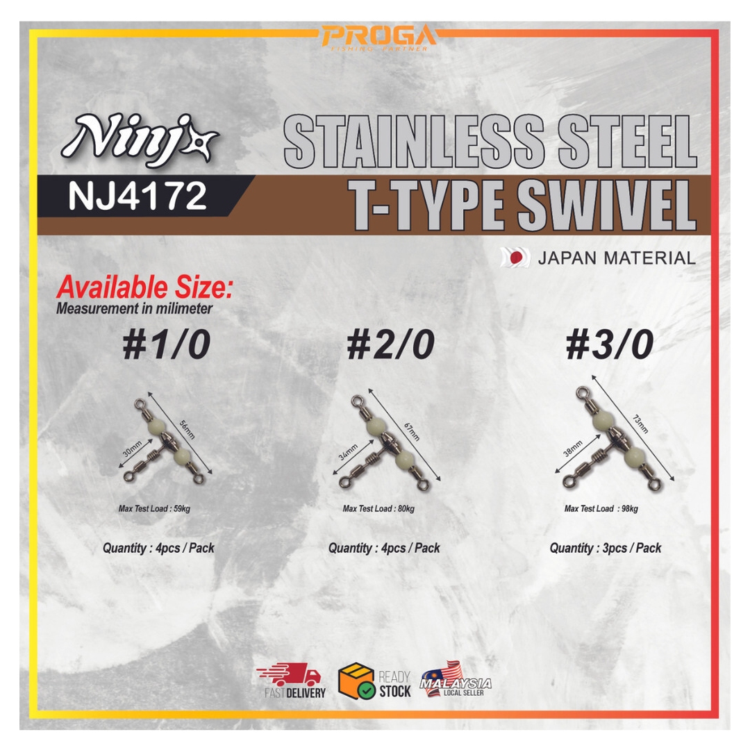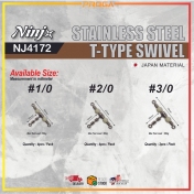 NINJ+ NJ4172 S/S T-TYPE SWIVEL #1/0-3/0 (1PKT 3PCS) MATERIAL:HIGH QUALITY STAINLESS STEEL =SIZE= - #1/0 (1PKT 3PCS) - #2/0 (1PKT 3PCS) - #3/0 (1PKT 3PCS)