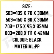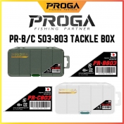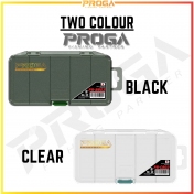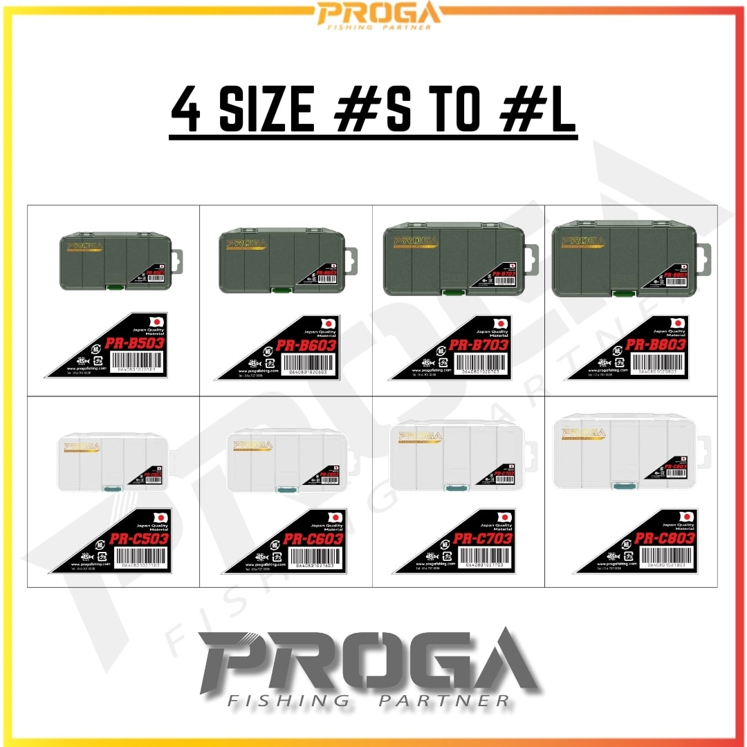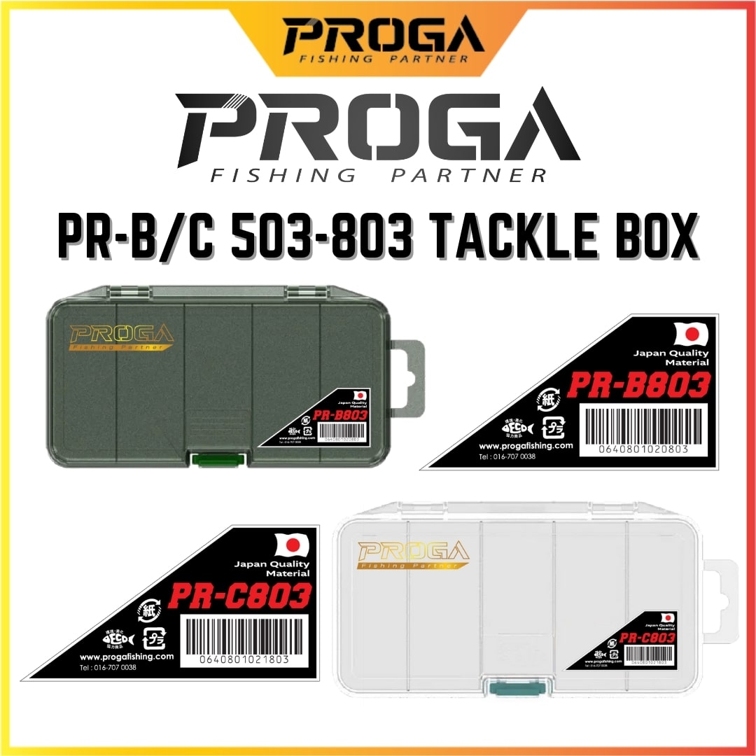 PR-B/C503-803 PROGA TACKLE CASE {BLACK/CLEAR} SIZE: 503=135 X 70 X 30MM 603=160 X 80 X 30MM 703=175 X 95 X 35MM 803=208 X 111 X 42MM NOTICE!!!!!!!!!!!!!!!!!!!!!! COLOUR: B=BLACK C=CLEAR STRUCTURE: FIXED BAFFLE X4 MATERIAL:PP